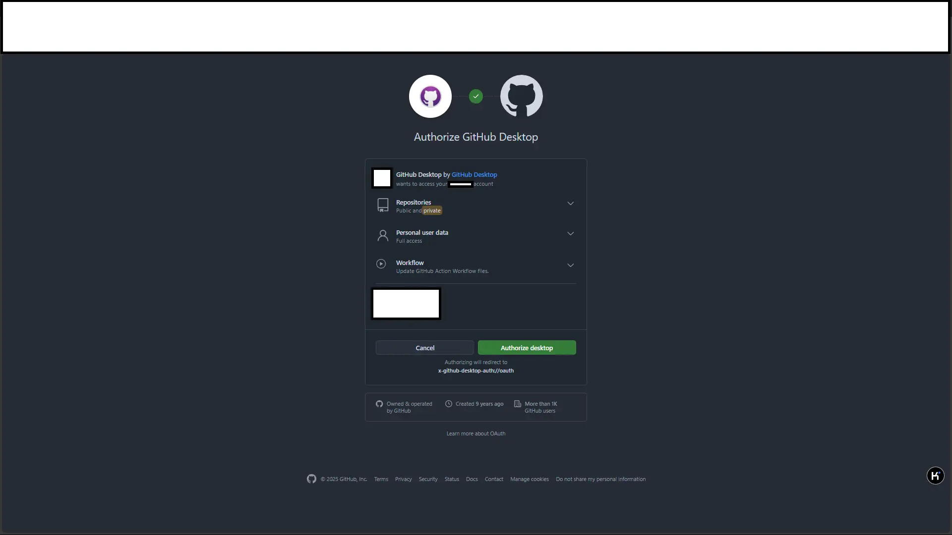 4. 在跳转到的授权页面中 点击Authorize desktop按钮