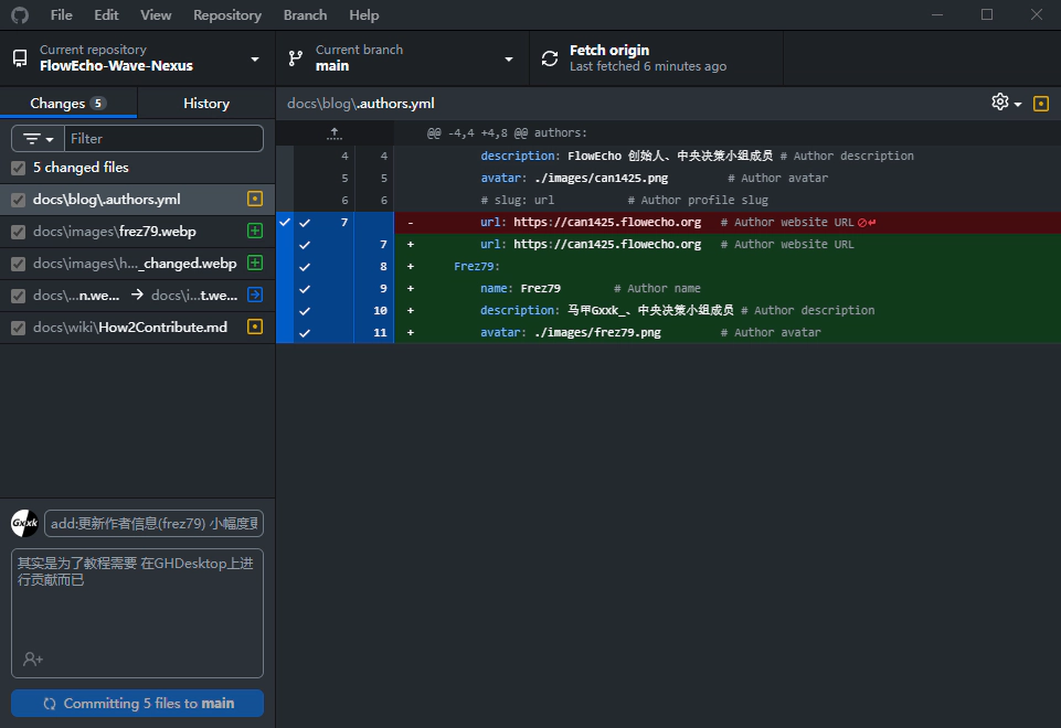 打开/docs/blog/.authors.yml 在最后方追加内容 格式如下: