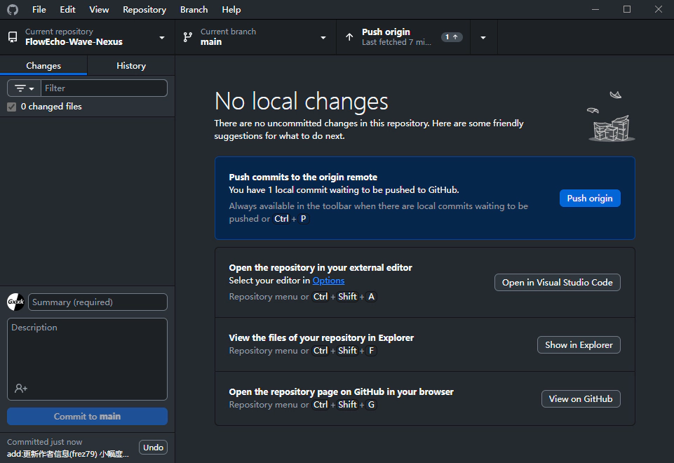 1. 在Github Desktop中 打开此仓库 按下 Ctrl+` 打开命令行